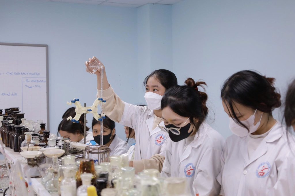 Trong tiết học, các bạn được hướng dẫn cách phân tích mẫu thuốc, nhận biết tạp chất, kiểm tra độ tinh khiết và chất lượng dược phẩm – những công việc đòi hỏi sự tỉ mỉ, chính xác và trách nhiệm cao.