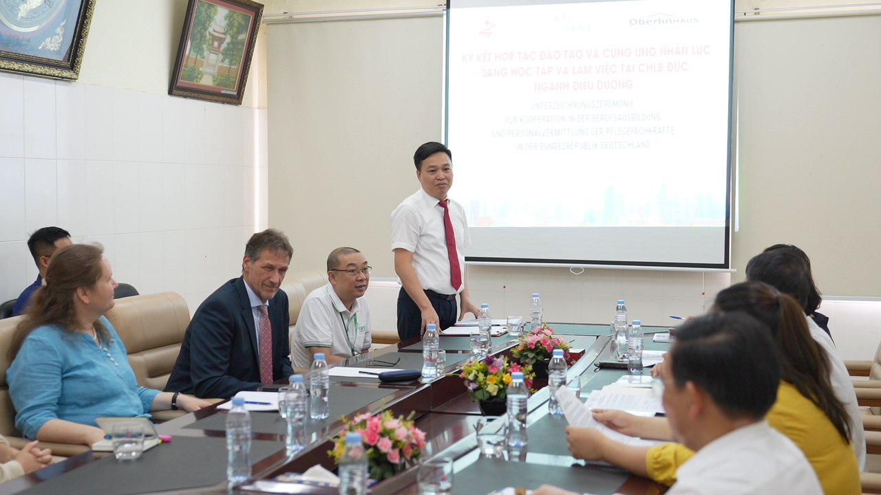 Về trường OberlinHAUS: Ông Hans- Henning Averbeck – Giám đốc, bà Annette Hirschfeld – phòng tài chính, bà Ulrike Frey – khoa điều dưỡng. Viện Khoa Học Đào Tạo Và Đầu Tư Quốc Tế (DEVI) có: Ông Nguyễn Quang – Chủ tịch, điều phối chương trình tại Đức, Ông Lê Hữu Dũng – Viện trưởng, điều phối chương trình tại Việt Nam, Ông Hà Nguyễn Quốc Hùng – thông dịch viên.